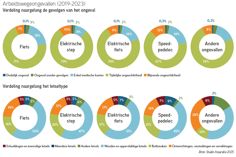 Uit de studie van Assuralia blijkt immers ook dat bijna 8 op de 10 arbeidswegongevallen met een elektrische step leiden tot tijdelijke arbeidsongeschiktheid, en 12% van die met een speedpedelec zelfs tot blijvende ongeschiktheid. Het is dus duidelijk dat de kosten kunnen oplopen. Nu zijn lichamelijke schade en arbeidsongeschiktheid in dergelijke gevallen zoals reeds gezegd sowieso gedekt door de arbeidsongevallenverzekering, die in ons land verplicht is.
