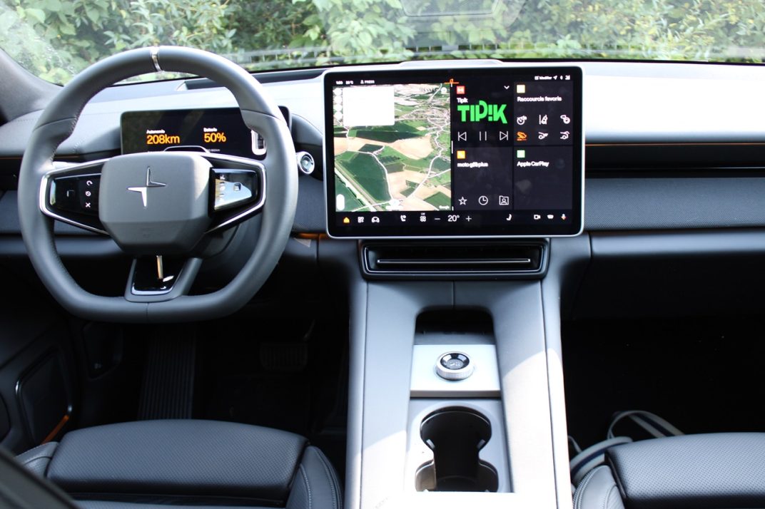 Maar bij Geely (de groep waartoe Polestar behoort) worden zoveel mogelijk knoppen en schakelaars weggelaten om kosten te besparen. Vanuit economisch oogpunt is dat begrijpelijk, maar niet als het om de veiligheid van de inzittenden gaat! Om de mistlampen aan te zetten, moest ik 3 handelingen uitvoeren. DRIE! Ook daarvoor moet je het touchscreen gebruiken… En als het regent dat het giet op de snelweg, dan is dat levensgevaarlijk, geloof me.
