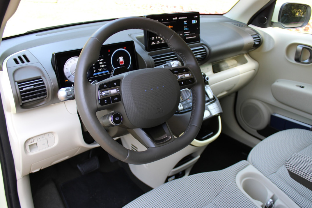 Beide stadsauto’s zijn minder dan vier meter lang. De Hyundai is 10 cm korter, 16 cm smaller en ook 8 cm hoger dan de R5. Verrassende afmetingen in deze tijd, waardoor het binnenin een beetje krap aanvoelt. Nochtans zit deze Inster boordevol praktische vondsten die in het dagelijks leven een schot in de roos zijn! Er is veel opbergruimte voorin en dankzij de verschuifbare achterbank is de beenruimte ongeëvenaard in dit segment. Bovendien kunnen de voorstoelen volledig worden neergeklapt, zodat je occasioneel lange voorwerpen kunt vervoeren. Het enige minpuntje: het is een strikte vierzitter. Toch zit je achterin veel beter dan in de Renault.