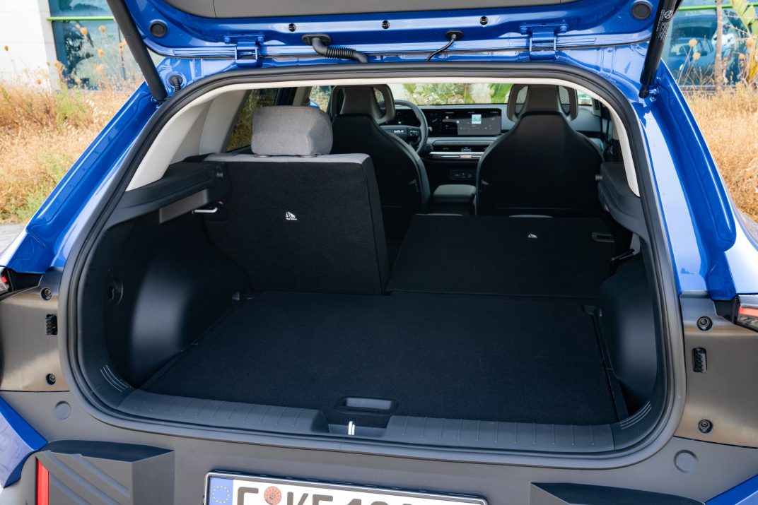 De Fastback is wel een flinke 30 cm langer dan de vijfdeurs, een verschil dat volledig in de achteroverhang zit. Daardoor kan de Fastback een groter minimumlaadvolume voorleggen: 490 liter, tegenover 435 liter onder de hoedenplank van de vijfdeurs. Een frunk is er in beide gevallen niet, in tegenstelling tot in de EV3.