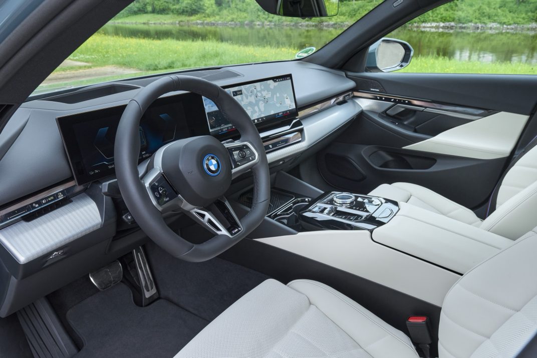 Om terug te komen op de i5 Touring, waarvan de afmetingen identiek zijn aan die van de berlineversie: visueel onderscheiden slechts enkele elementen hem van de 5 Serie Touring met verbrandingsmotor: specifieke bumpers met zwarte inzetstukken, specifieke velgen en een gesloten radiatorrooster met daarin het BMW ‘i’ logo. Ook binnenin zijn het vooral kleine details die beide versies van elkaar onderscheiden.