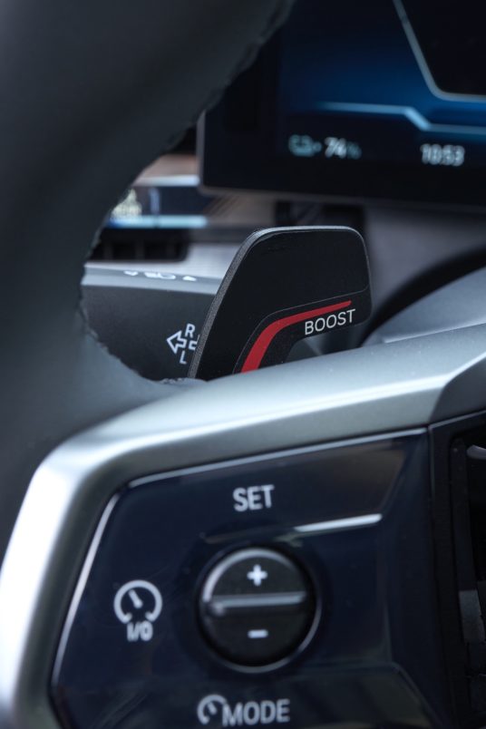 En als je nog sneller wil optrekken, zorgt een ‘Boost’-paddle links achteraan op het stuurwiel ervoor dat de prestaties van de auto gedurende 10 seconden nog toenemen.