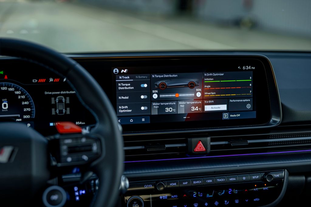 Wat de prestaties betreft, wordt de minder gunstige stroomlijn natuurlijk gecompenseerd door het vermogen van 650 pk dat de voorste en de achterste elektromotor gezamenlijk ontwikkelen. Op het eerste gezicht niks uitzonderlijks in de EV-wereld, maar bij de N-afdeling is puur vermogen geen doel op zich: het draait eerder om de rijbeleving.