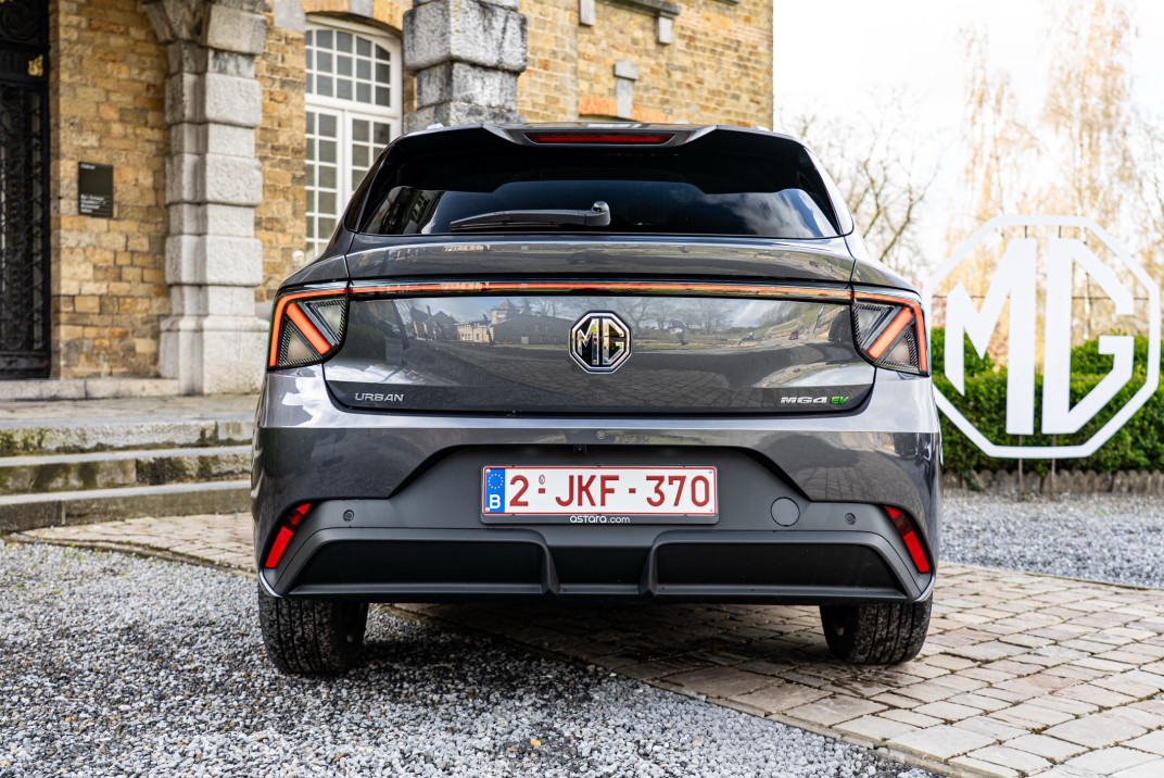 Qua uiterlijk is de MG4 EV Urban vrij ingetogen en valt hij niet meteen op, ook al heeft hij enkele stijlkenmerken van de MG Cyberster overgenomen, met name de boemerangvormige achterlichten.