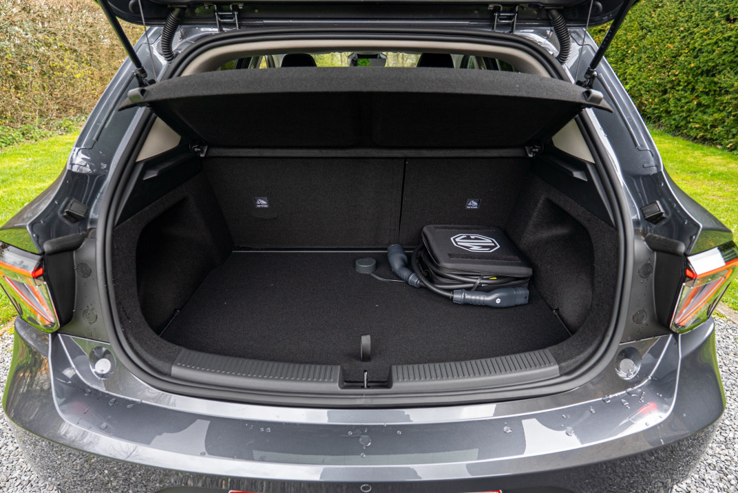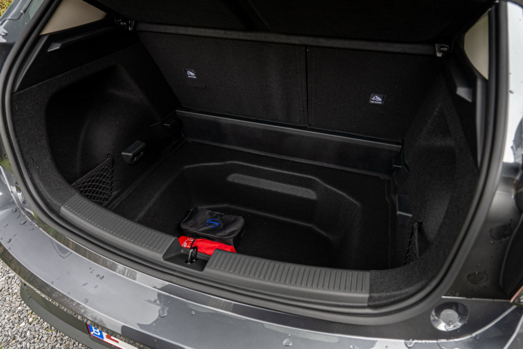 De bagageruimte heeft een inhoud van 577 liter (568 liter met de grote accu), plus nog eens 98 liter onder de vloer, bijvoorbeeld om de laadkabels in op te bergen.
