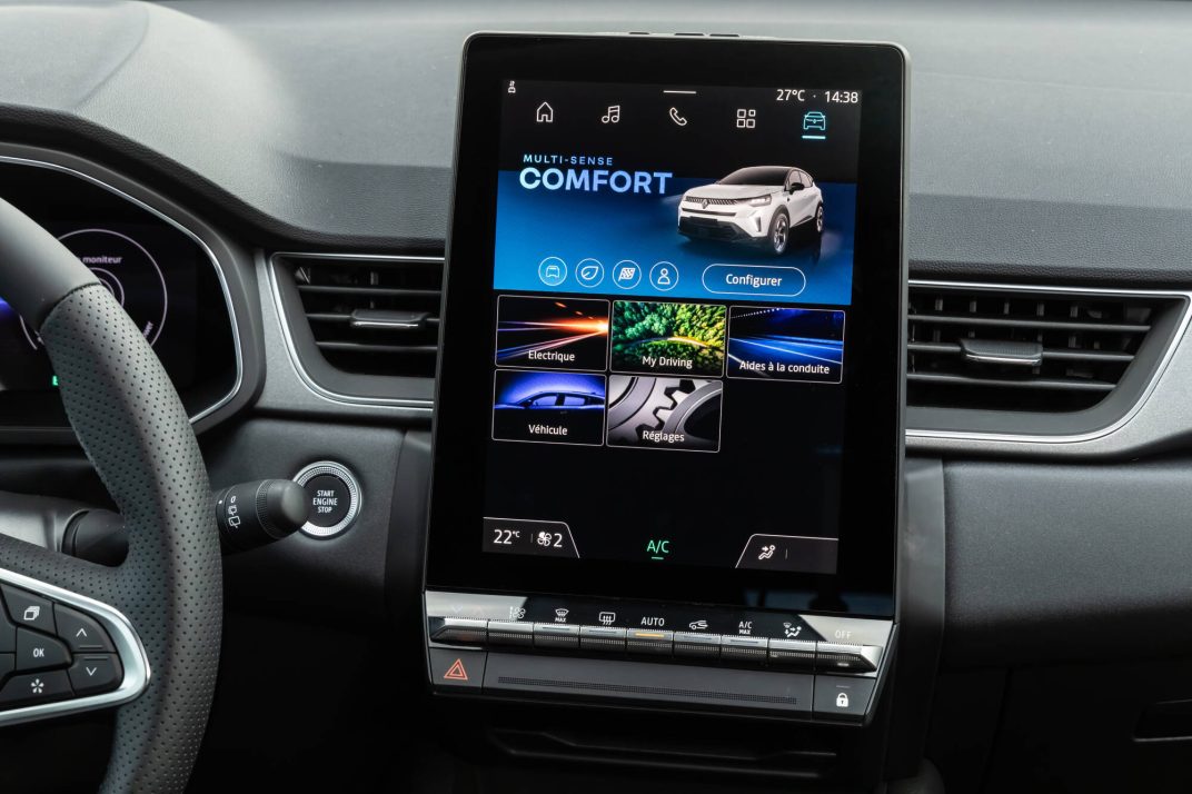 Op het gebied van ADAS voldoet de nieuwe Captur aan de Europese GSR2-norm en kan hij dus rekenen op een hele reeks rijhulp- en veiligheidssystemen die worden geactiveerd telkens als de auto wordt gestart. Renault heeft echter het goede idee gehad om een fysieke ‘My Safety Switch’-knop toe te voegen aan de linkerkant van het stuurwiel. Hiermee kun je bepaalde rijhulpsystemen aanpassen (en dus uitschakelen) via een menu, en deze ‘aangepaste’ modus activeren door twee keer op de knop te klikken telkens als je de auto start.
