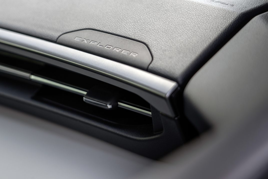 En voor wie nog zou twijfelen, staat helemaal rechts de naam Explorer erin gestanst. Blikvanger in het midden is het 14,6 duim grote, verticaal opgestelde aanraakscherm dat draait op Fords eigenste Sync-systeem. Dat is behoorlijk gebruiksvriendelijk en kan makkelijk gepersonaliseerd worden, met grote, verplaatsbare widgets.