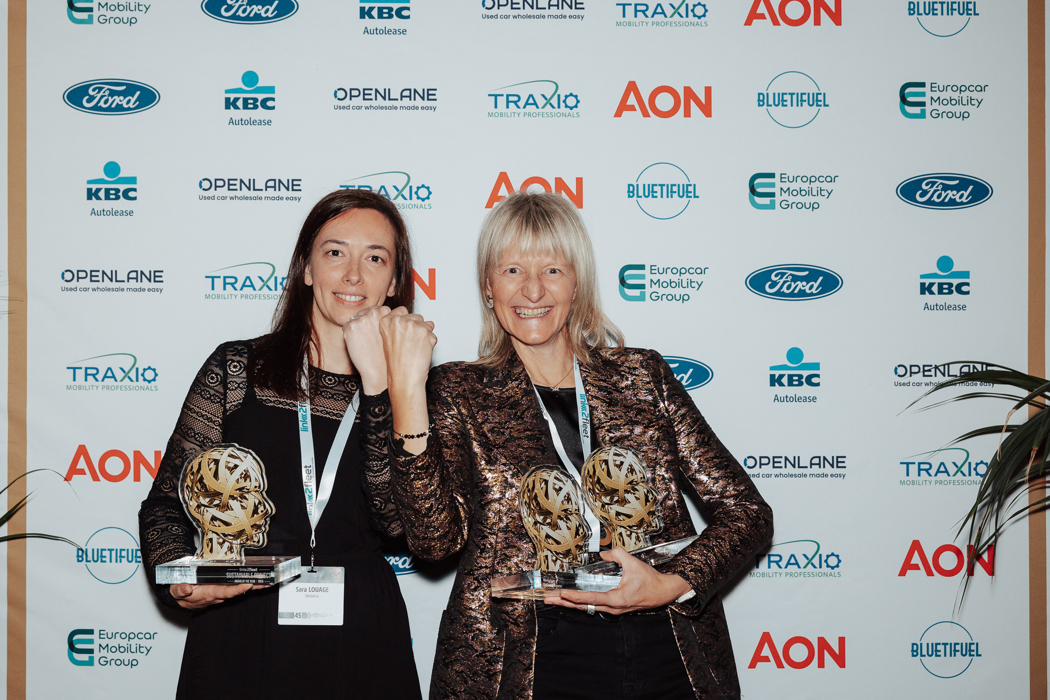 Sandra Eemans (Mobility Officer de Mediahuis) était la reine des trophées ce 24 octobre puisqu’elle est repartie avec 3 awards. Non seulement la seconde place du Fleet & Mobility Owner of the Year Award, mais aussi les premiers prix en matière de mobilité et de durabilité.