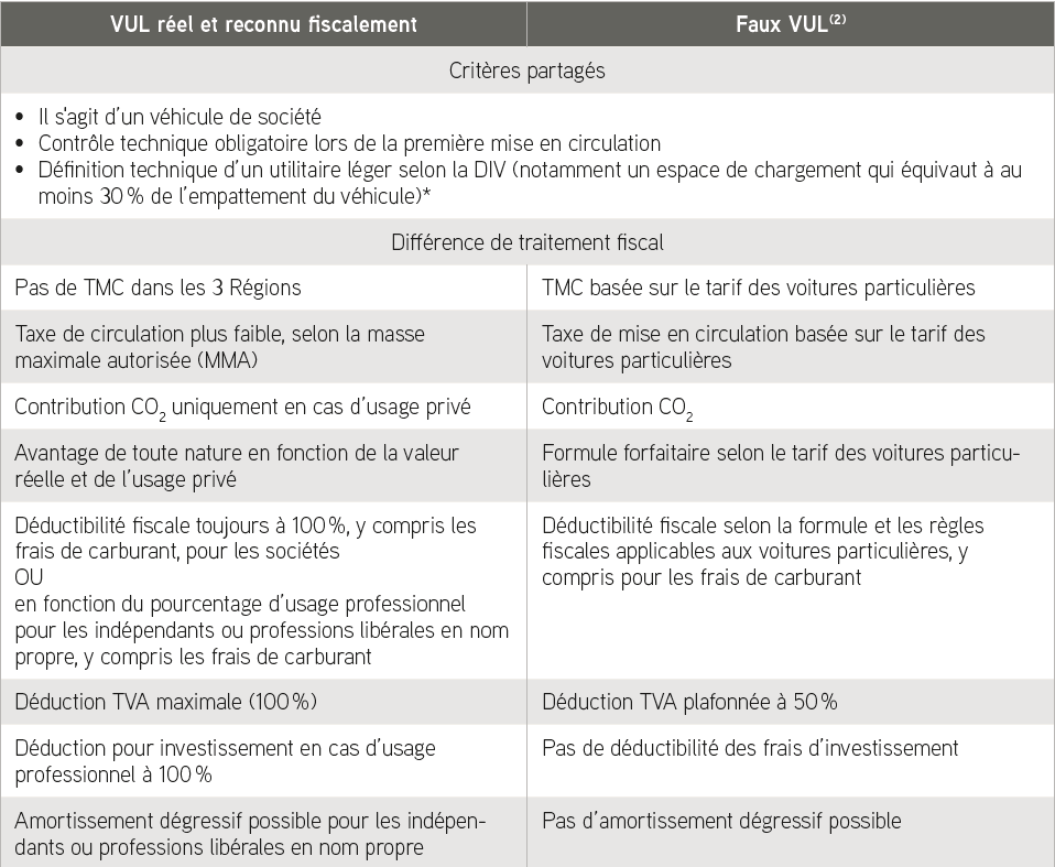 *Pour être considéré comme utilitaire léger du point de vue fiscal (par le SPF Finances), ce rapport doit être de 50% ou plus de l’empattement.