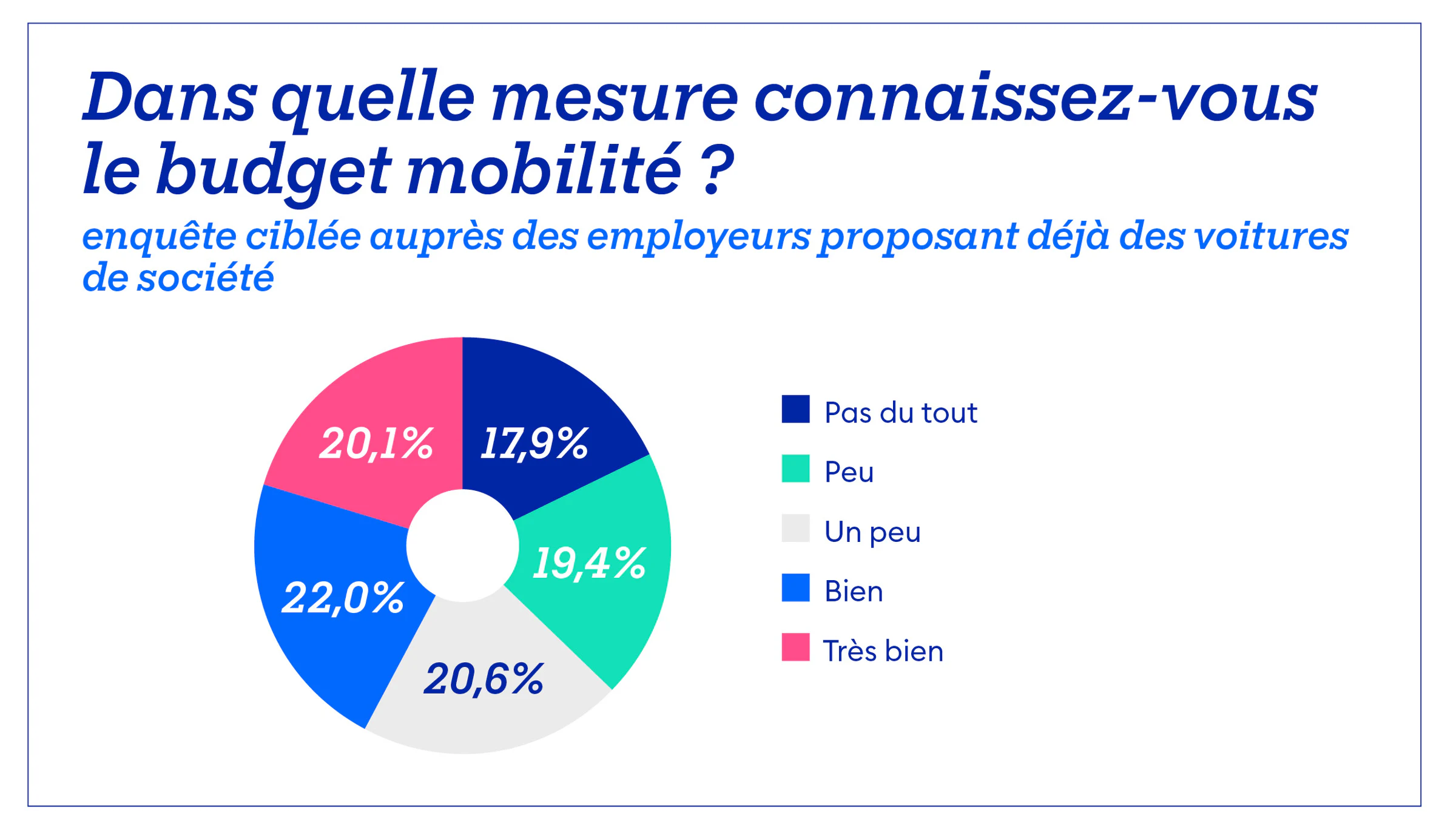 L’enquête ciblée d’Acerta auprès de responsables RH, de gestionnaires de flotte et de cadres supérieurs montre que 49,5 % sont informés de l’annonce de l’introduction obligatoire prévue du budget mobilité dès le 1er janvier 2026 pour les travailleurs ayant droit à une voiture de société. Mais la moitié n’en sait rien. Plus d’un participant sur trois (37,3 %) reconnaît même ne pas ou peu maîtriser le phénomène du budget mobilité. Si 20,6 % déclarent être familiarisés avec ce concept, 42,1 % (soit moins de la moitié) estiment être bien, voire très bien informés.