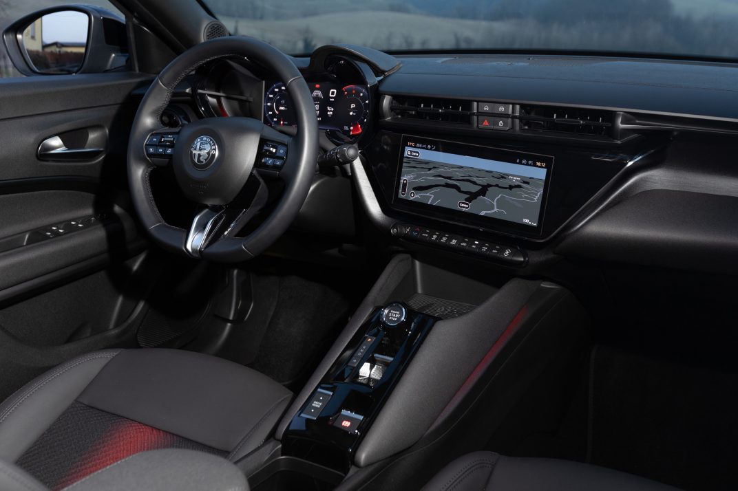 À bord, l’élégance italienne se ressent immédiatement. L’ergonomie est soignée, avec un écran tactile central de 10,25 pouces bien intégré et une instrumentation numérique orientée vers le conducteur. Pourtant, tout n’est pas parfait : l’interface manque d’intuitivité, et l’absence d’une touche « back » complexifie la navigation entre les menus. Heureusement, les commandes physiques essentielles sont bien disposées. Le sélecteur DNA, situé sur la console centrale près du levier de vitesse, permet de modifier les modes de conduite en un geste. Bien que son emplacement soit fonctionnel, placé directement au volant aurait été plus ergonomique.