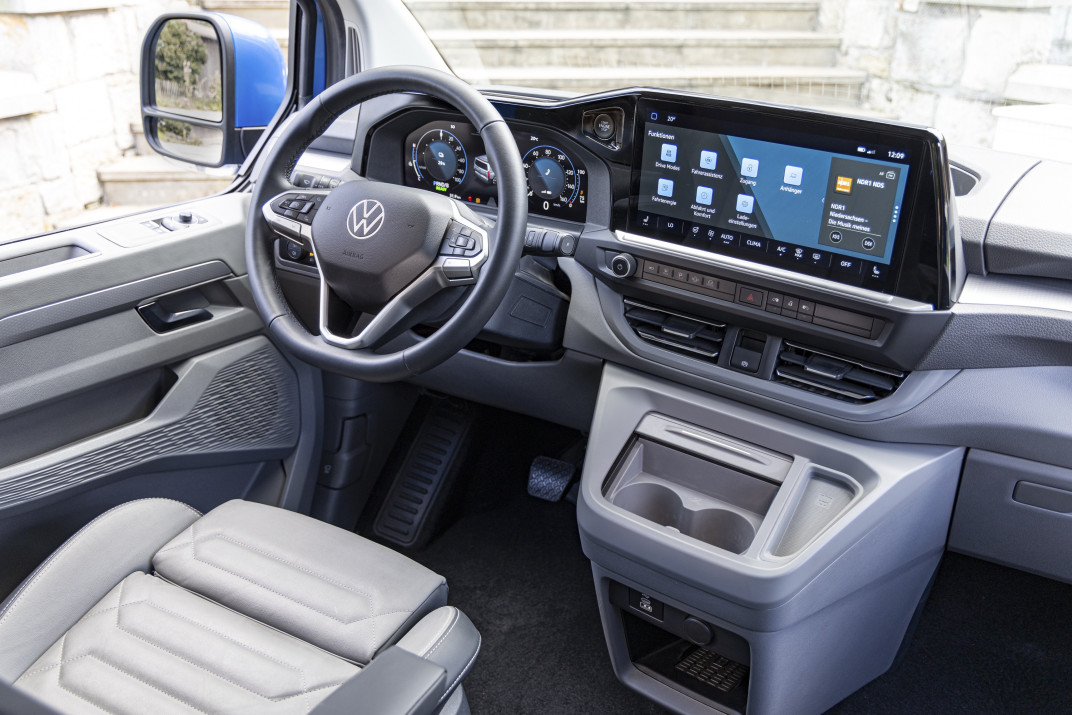Sur le plan du style, la Caravelle se distingue nettement de la génération précédente. Partageant sa plateforme avec le Ford Tourneo Custom, elle en reprend certaines proportions, notamment de profil. L’identité Volkswagen reste toutefois visible, grâce à une face avant spécifique et à des feux arrière en forme de C. L’ensemble demeure toutefois sobre et consensuel, sans recherche particulière de valorisation esthétique.
