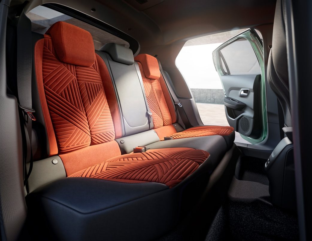 Et puis, il y a, dès le deuxième niveau de finition, les sièges en velours. Oui, en velours ! De quoi se sentir comme dans son salon, avec des coloris parfois déroutants comme le bleu ou l’orange. D’ailleurs, on peut retrouver de la couleur sur une partie du meuble de bord et des portières, pour recouvrir un matériau recyclé agréable au toucher. Ceci participe à une ambiance plus chaleureuse, « premium », très différente des cousines 208 et Corsa, même s’il reste quelques plastiques durs pour les parties basses du mobilier.