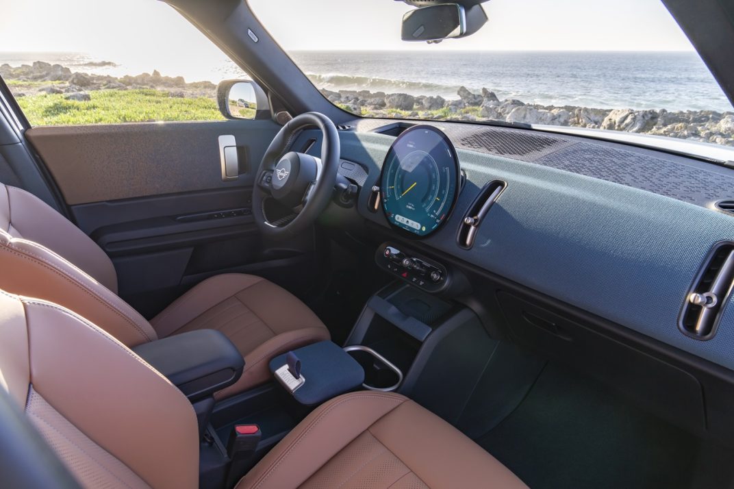 La version SE ALL4 profite donc de deux moteurs, chacun placé sur un essieu, pour en faire une 4×4. Puissance totale : 313 ch. Autonomie annoncée ? Jusqu’à 432 km grâce à une batterie de 64,6 kWh (nets). Et derrière le très agréable nouveau volant, on constate un comportement « à la Mini ». Malgré ses deux tonnes, qui ne se sentent qu’au freinage, cette Countryman tient sur des rails ! Elle est un peu plus ferme que les versions à moteur thermique, dû à l’absence de suspension adaptative. Mais les sièges assurent le confort, autant à l’avant qu’à l’arrière. La consommation relevée lors de notre court essai sous le soleil de Lisbonne s’est élevée à 16,8 kWh/100 km. Ceci est donc prometteur pour se rapprocher, dans la pratique, de l’autonomie annoncée.