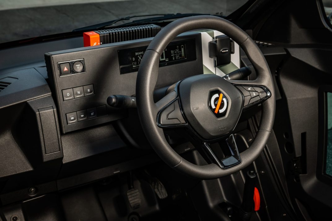 Une version monoplace avec un caisson d’un volume de 649 litres est également au catalogue sous le nom de Bento. Dans cette dernière, on peut également ranger quelques marchandises (220 litres) derrière le conducteur. Mais à qui cette version est-elle destinée ? Aux utilisateurs de vélo-cargo qui cherchent une alternative pour être à l’abri de la pluie et du froid, par exemple. Ou encore à tous les professionnels qui parcourent moins de 150 km par jour. On pense par exemple à des employés communaux, afin d’effectuer des tâches de jardinage ou d’entretien de voirie. Citons aussi les services sociaux, pour la distribution de repas à domicile, ou encore, plus simplement, les livreurs. Chez Mobilize, on parle d’utilisateurs en charge de « livraison à la demande ». Bref, les profils sont variés, pour autant que le rayon d’action en une seule charge ne dépasse pas les 149 km. Le Duo permet d’effectuer, selon le cycle d’homologation des quadricycles (WMTC), 161 km.