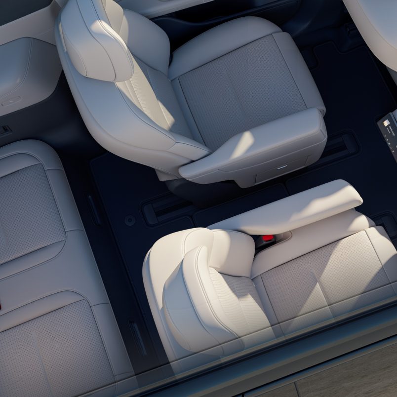 Avec la rangée 3 en place, le coffre peut embarquer 265 litres de bagages. Si on rabat les deux sièges de cette rangée, la capacité grimpe à 810 litres. Espaces de rangement sous les sièges, porte-gobelets à l’avant comme à l’arrière, « soft-close » des portières, … : on a véritablement envie de rester à bord de cette EL8.