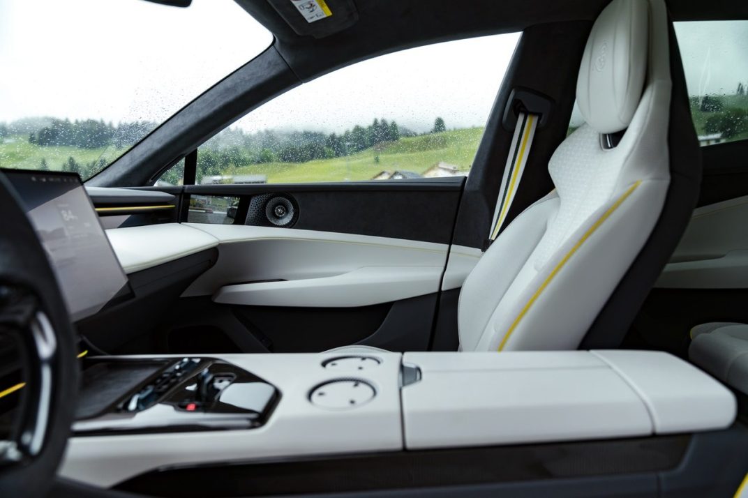 Pour en revenir à l’habitacle, l’ergonomie dans les deux véhicules est appréciable, avec un univers « décalé » dans la Lotus, notamment avec des commandes au volant et sur la console centrale qu’on pourrait qualifier « d’originales ». Le tout fonctionne assez bien, tout en restant intuitif, autant dans la Taycan que l’Emeya, ce qui reste le plus important. Et puis, comme beaucoup de supercars modernes, les deux modèles proposent un écran, en option, pour la personne qui occupe le siège de droite.