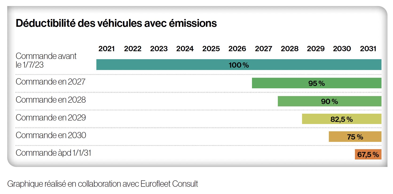 En outre, le gouvernement Arizona a décidé de limiter à 20 % maximum de la rémunération la partie de la rémunération des dirigeants d’entreprise versée sous forme d’avantages forfaitaires de toute nature, y compris une voiture de fonction. Enfin, l’introduction obligatoire du budget mobilité a été reportée à 2027 pour les grandes entreprises et à 2028 pour les PME de plus de 14 salariés et la Commission européenne a préparé une proposition visant à autoriser, dans une mesure limitée, les véhicules à moteur fossile après 2035.
