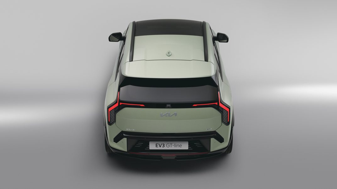 A l’arrière, on retrouve aussi quelques éléments noirs, mais également les feux hérités de l’EV9, qui ont été légèrement redessinés. Mais l’EV3 a vraiment un design exclusif caractérisé par un arrière bombé, contrairement à celui de l’EV9 qui est droit. La lunette arrière est surmontée d’une casquette qui intègre élégamment l’essuie-glace.