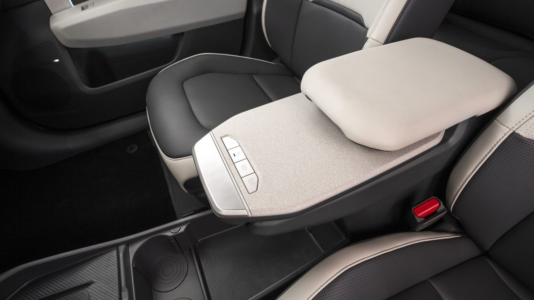 Au niveau de l’habitabilité, cet EV3 affiche un empattement de 2,68 m, équivalent à celui du Sportage, ce qui lui permet d’offrir un très bel espace intérieur. Tout comme l’EV9, ici, on retrouve une console centrale flottante, mais la spécificité de cet EV3, c’est cette tablette amovible. On peut notamment poser un ordinateur pour travailler ou un lunch. Seul bémol, cette tablette est fixe et ne peut donc pas tourner, et supprime tout rangement fermé dans l’espace central. Il faut se contenter des rangements ouverts qui se situent en dessous, mais qui sont très spacieux.