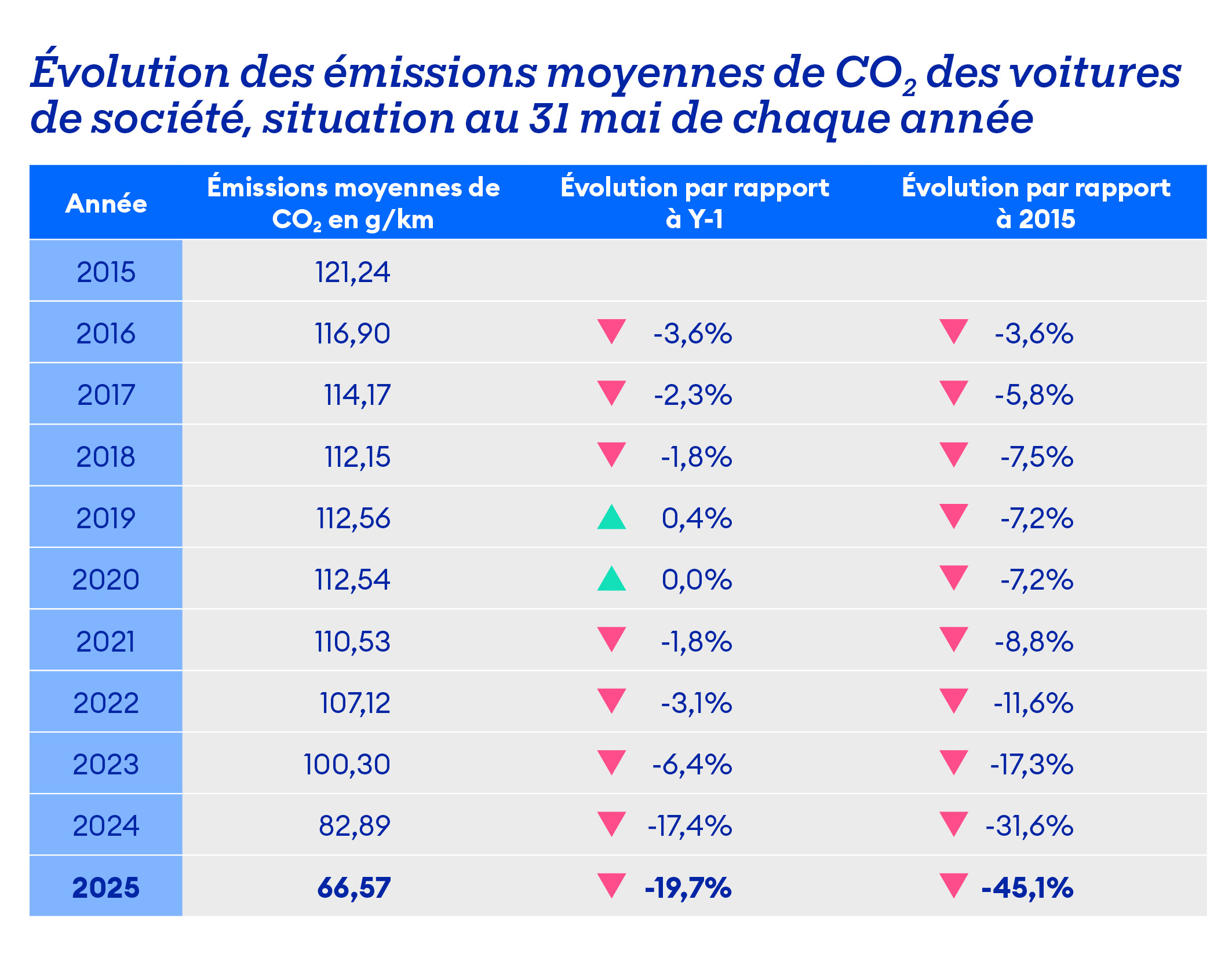 Zo is de gemiddelde CO2-uitstoot van bedrijfswagens in ons land sinds de zomer van 2023 met een derde gedaald, van 100,3 g/km naar 66,57 g/km. Kijken we nog verder, naar het afgelopen decennium, blijkt de gemiddelde CO2-uitstoot zelfs bijna gehalveerd, van 121,24 g/km naar 66,57 g/km. Dat is goed nieuws, aangezien de gemiddelde uitstoot van het Europese wagenpark in 2024 weer licht is gestegen: 106,8 g/km tegenover 106,4 g/km in 2023.