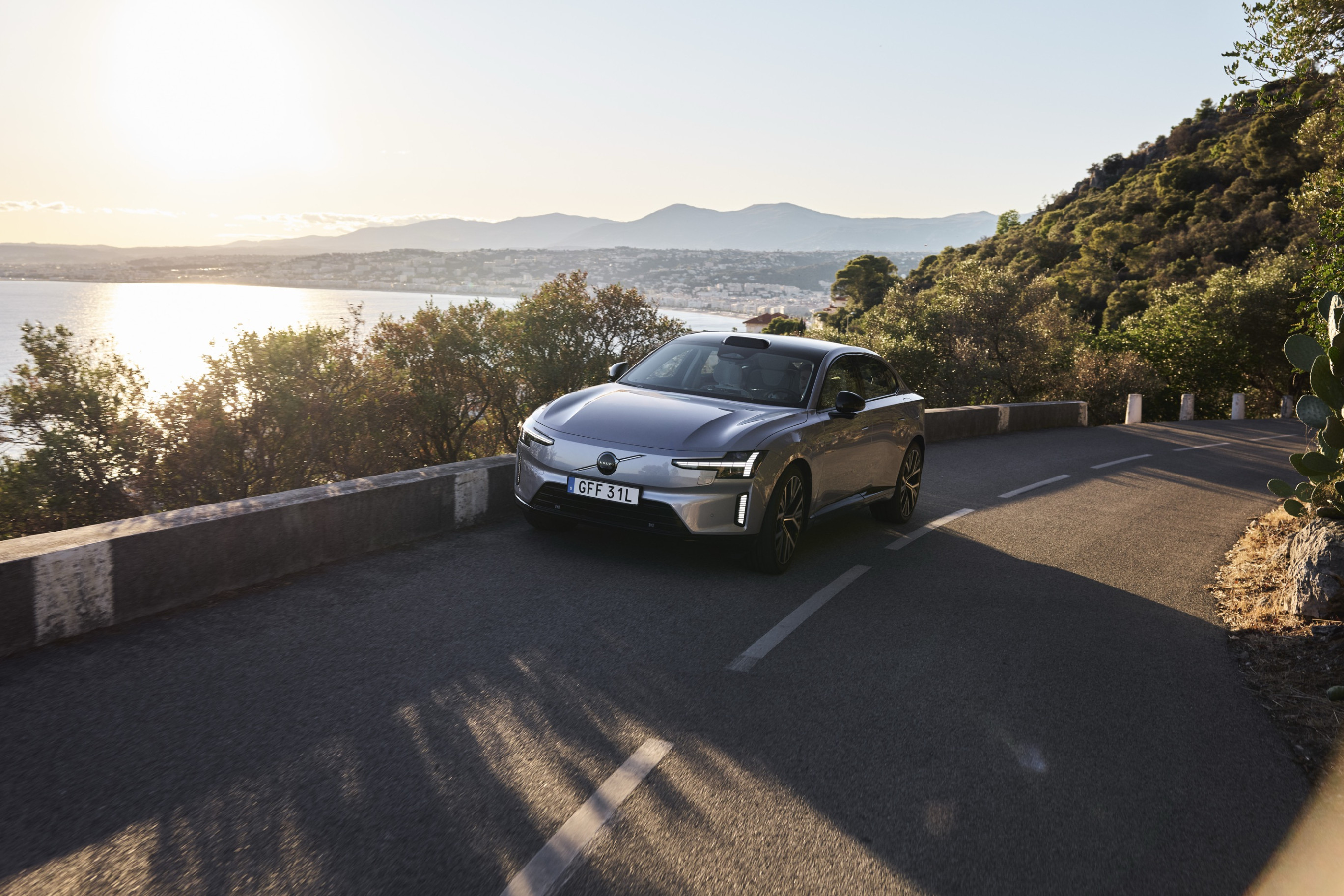 Volvo’s nieuwste designelementen zijn aanwezig, met een slanke voorkant zonder grille en een Thor’s Hammer-lichtsignatuur. Aan de achterkant strekken de tweedelige lampen zich uit aan weerszijden van de achterklep, wat zijn moderne, statueske uiterlijk accentueert.