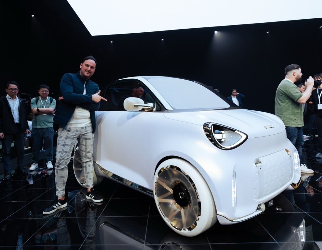 Dit vertaalt zich in een bewust strakke, afgeronde en minimalistische vormgeving, verrijkt met tal van onderscheidende elementen. De tweekleurige combinatie van mat wit en warm goud geeft meteen een sterke visuele signatuur. smart heeft al bevestigd dat deze combinatie ook op het productiemodel beschikbaar zal zijn. Meer verrassende details, zoals elementen die doen denken aan bretellen of lederen accenten rond de lichtunits, voegen een premium dimensie toe die zelden voorkomt in dit segment. Ook de aandacht voor detail valt op, zoals het element in de voorbumper dat doet denken aan een luxekoffer van een bekend modemerk, of de subtiele vermelding van de geografische coördinaten van het Mercedes-centrum in Sindelfingen in de ronding van de achterlichten. Met de Concept #2 benadrukt smart duidelijk dat dit model het resultaat is van de samenwerking tussen Geely en Mercedes, waarbij Mercedes instaat voor het design. Het resultaat is een wagen die niet alleen een mobiliteitsbehoefte invult, maar ook een middel tot persoonlijke expressie wordt.